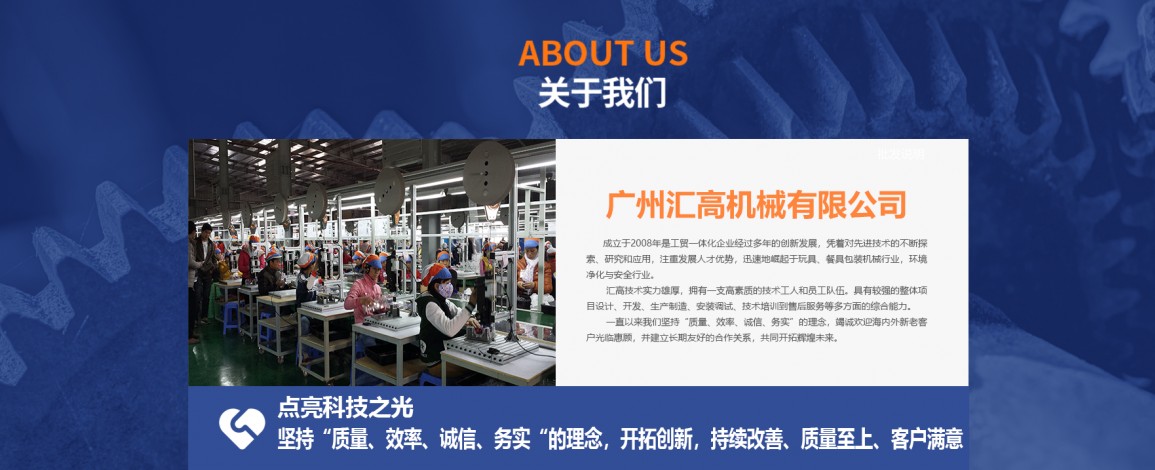 廣州匯高機械設(shè)備有限公司,成立于2008年是工貿(mào)一體化企業(yè)經(jīng)過多年的創(chuàng)新發(fā)展,憑著對先進技術(shù)的不斷探索、研究和應用,注重發(fā)展人才優(yōu)勢,迅速地崛起于玩具、餐具包裝機械行業(yè),環(huán)境凈化與安全行業(yè)。